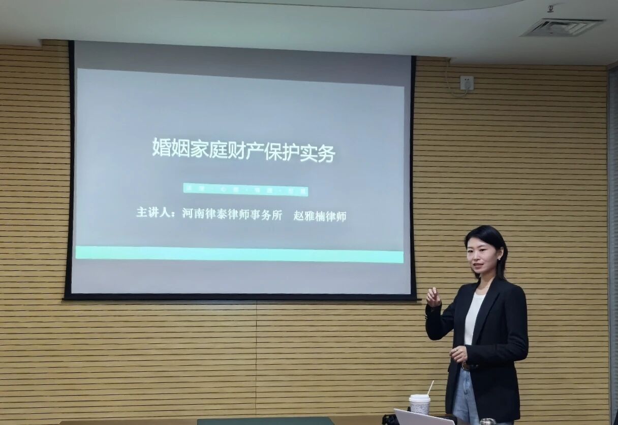 2025年9月26日,2025年度第七期律泰学堂活动在河南律泰律师事务所会议室如期举行。律泰所赵雅楠律师以“婚姻家庭财产保护实务”为题进行分享。